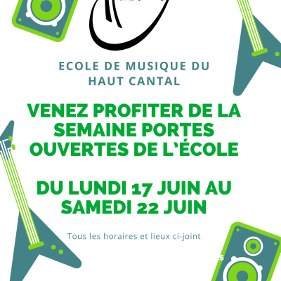 25/04 et 26/04 : Festival de printemps Saignes, ateliers collectifs Saignes et Riom le samedi, fin de cycle classique et concert des profs le dimanche. -